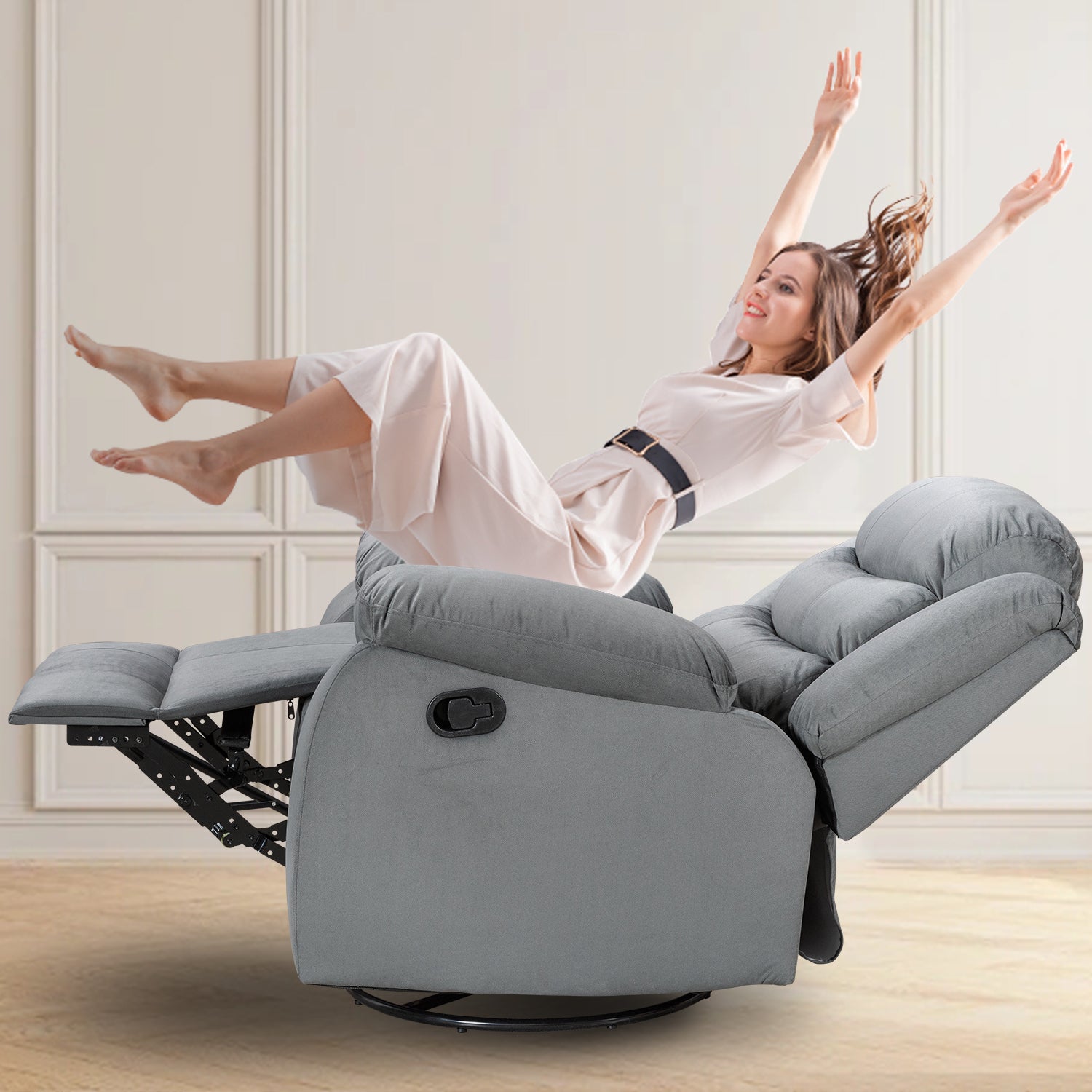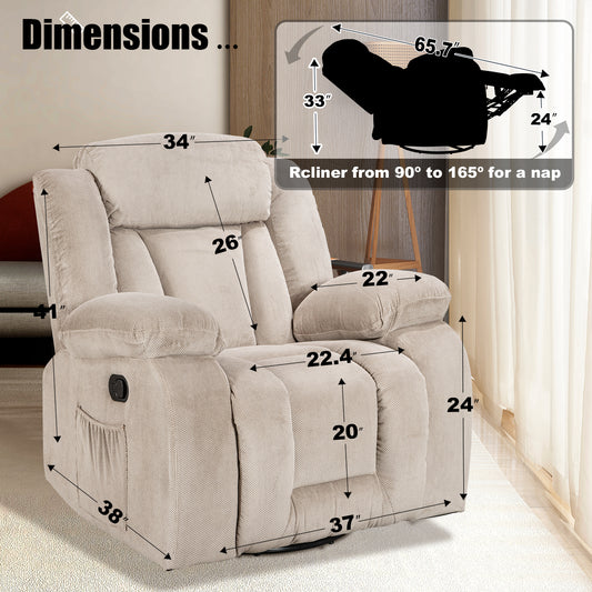 Khaki Recliner Chairs for Adults Manual Reclining Sofa Chair Oversized Recliner Chair for Living Room Comfy Home Theater Seating (Rocking and Swivel, 8104 Chenille)